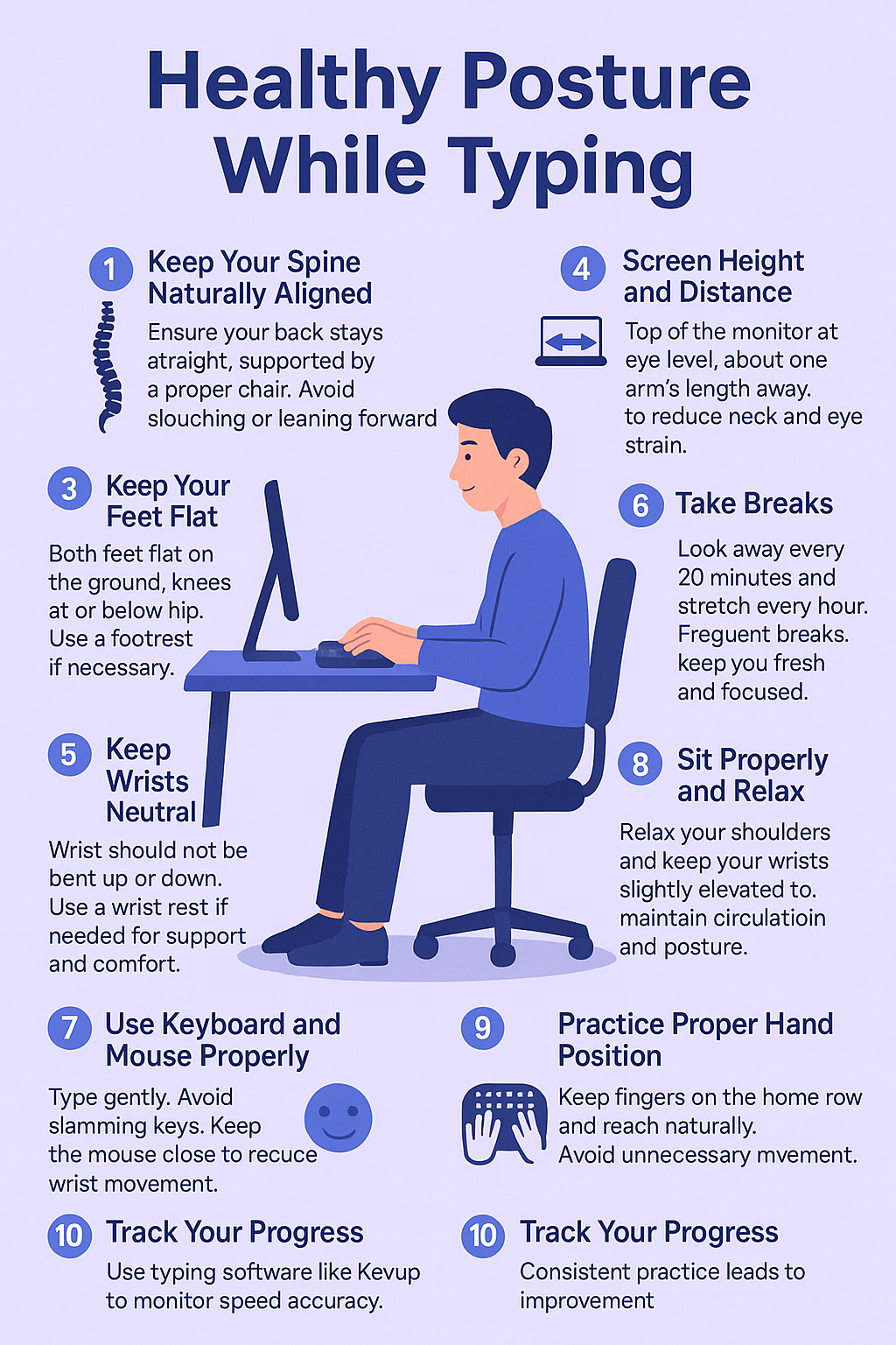 Good posture not only prevents strain—it boosts your typing performance and endurance.
